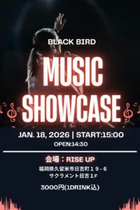 BLACK BIRD ボイストレーニングスタジオ MUSIC SHOW CASE ◆1月18日(日) Open 14:30 Start 15:00 ◆会場 : […]