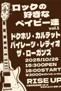 ロックの好きなベイビー達Vol.1 ◆10月26日(日) Open 15:30 / Start 16:00 ◆会場 : RISE UP 久留米市日吉町19-6サ […]